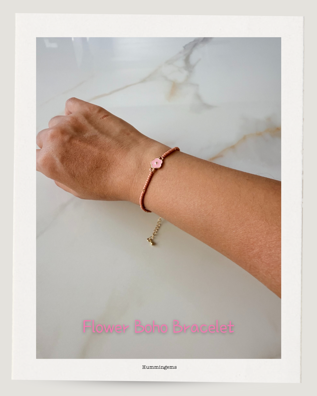 This flower child boho beaded bracelet captures the bohemian spirit with its lovely dusty rose...