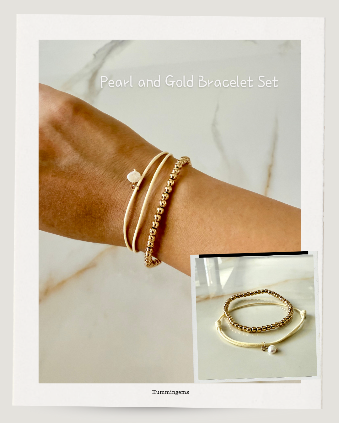 White Drawstring Pearl Pendant & Golden Ball Bracelet Set