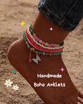 These Handmade Elastic Boho Anklets are crafted with washed colored beads for a complete bohemian aesthetic look. Layer them or wear one piece. Bundle to save!
