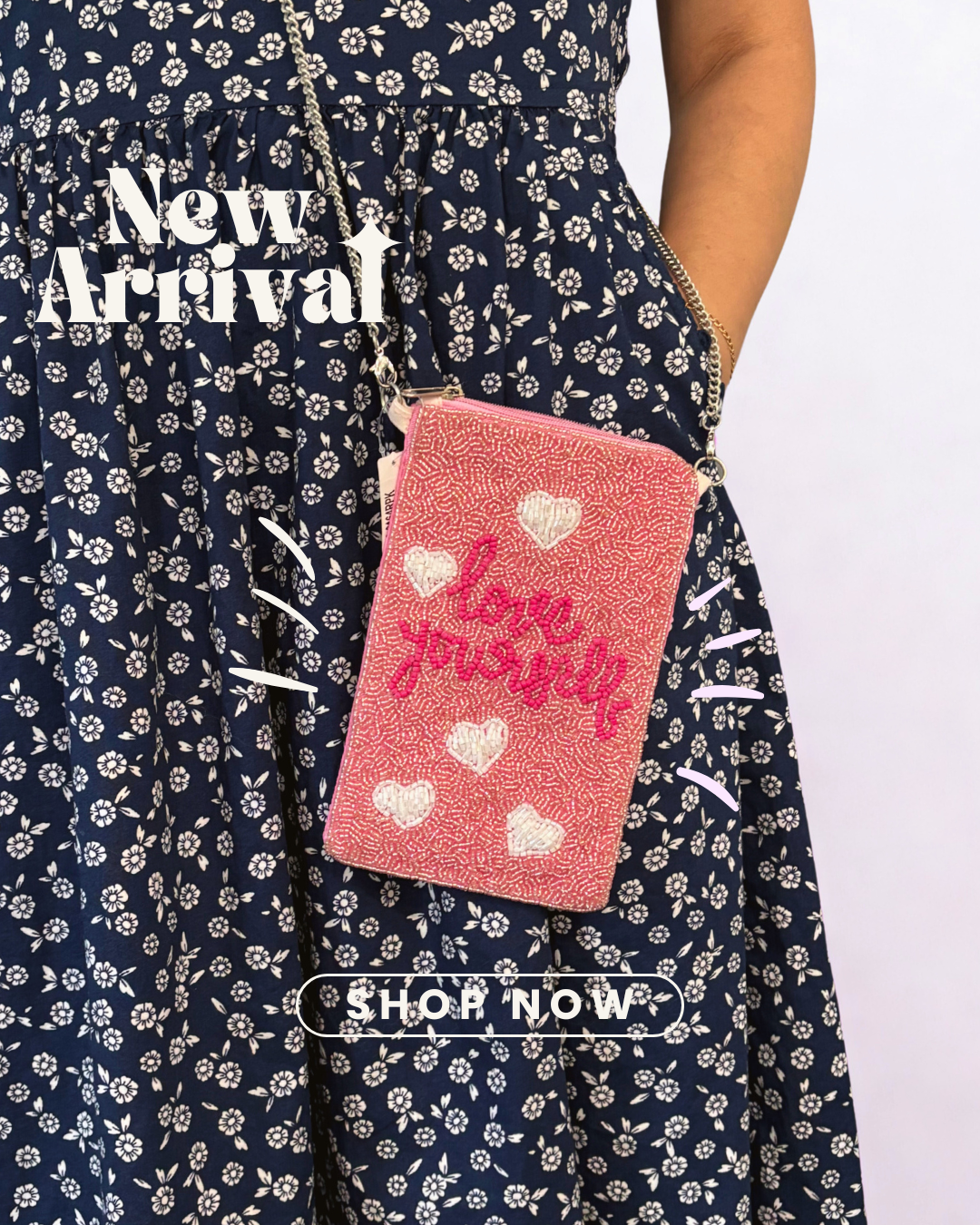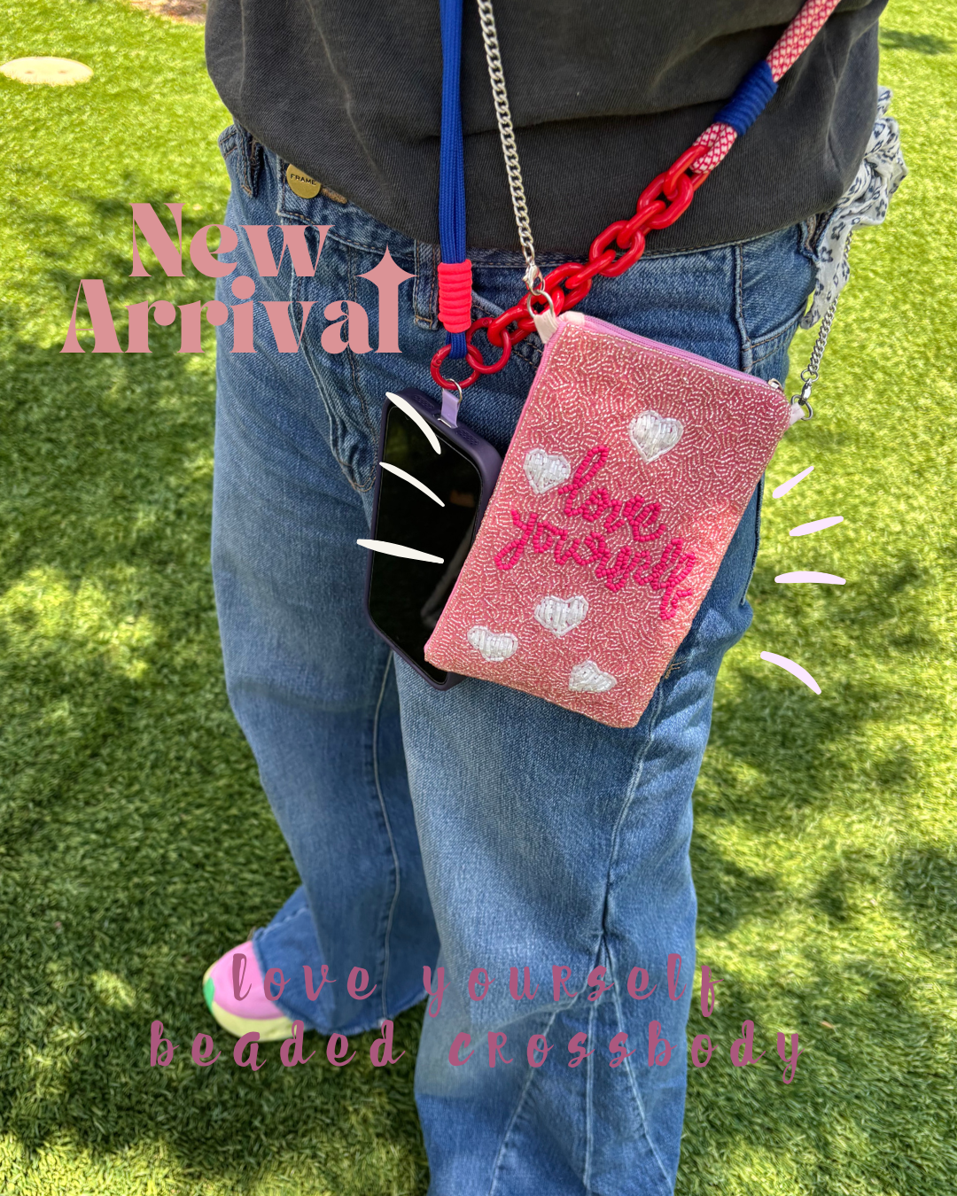 Treat yourself with our exquisite Love Yourself mini beaded bag in dusty rose pink. This charming accessory isn't just a bag—it's a statement of self-appreciation that deserves a place in your collection. The color beautifies any outfit!