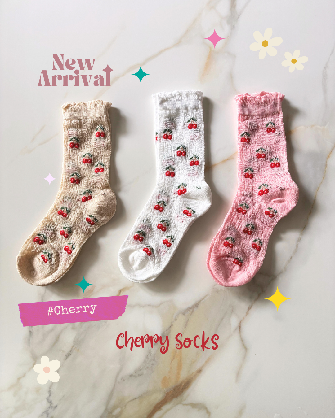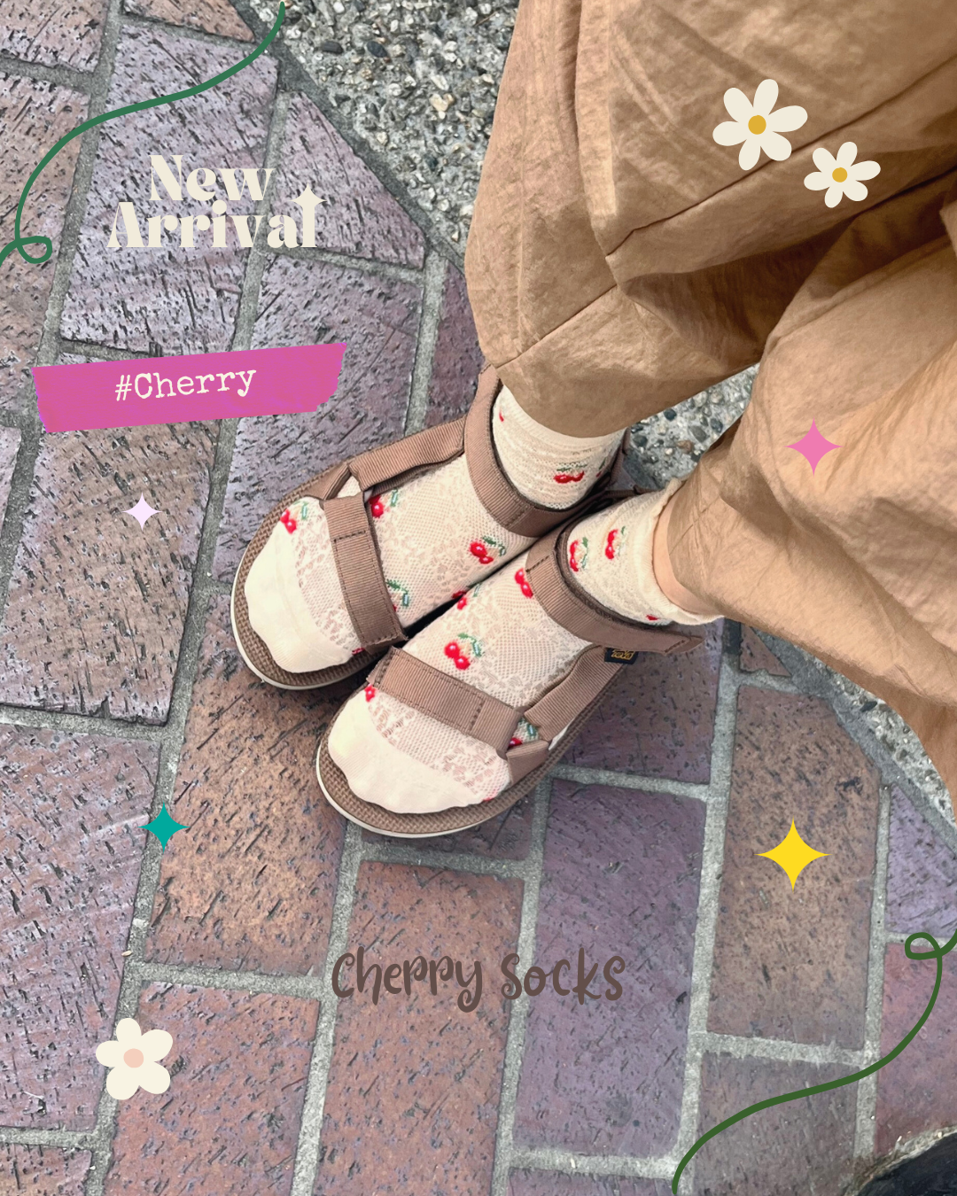 These socks feature a sweet and lovely cherry design that will add a touch of whimsy to any outfit. Not only are they stylish, but they are also comfortable to wear, making them a must-have to show off your summer tunes.
