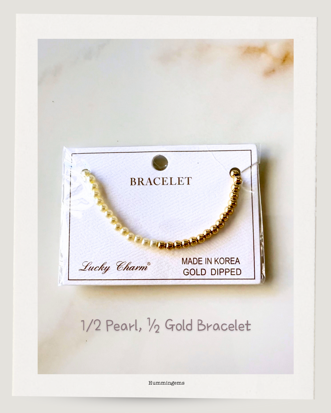 If you can't make up your mind on which bracelet to wear, this bracelet combines half pearls with half 14k gold-dipped balls, offering a classy style and elegant accessory that's perfect for daily wear.