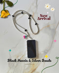 New Arrival! This crossbody phone necklace features a lovely black heart and classic bead design, making it both versatile and functional. Keep your phone securely attached and add a touch of style to any outfit. Comes with phone tag with hook that goes between the cell phone and its cover to connect to the lanyard.