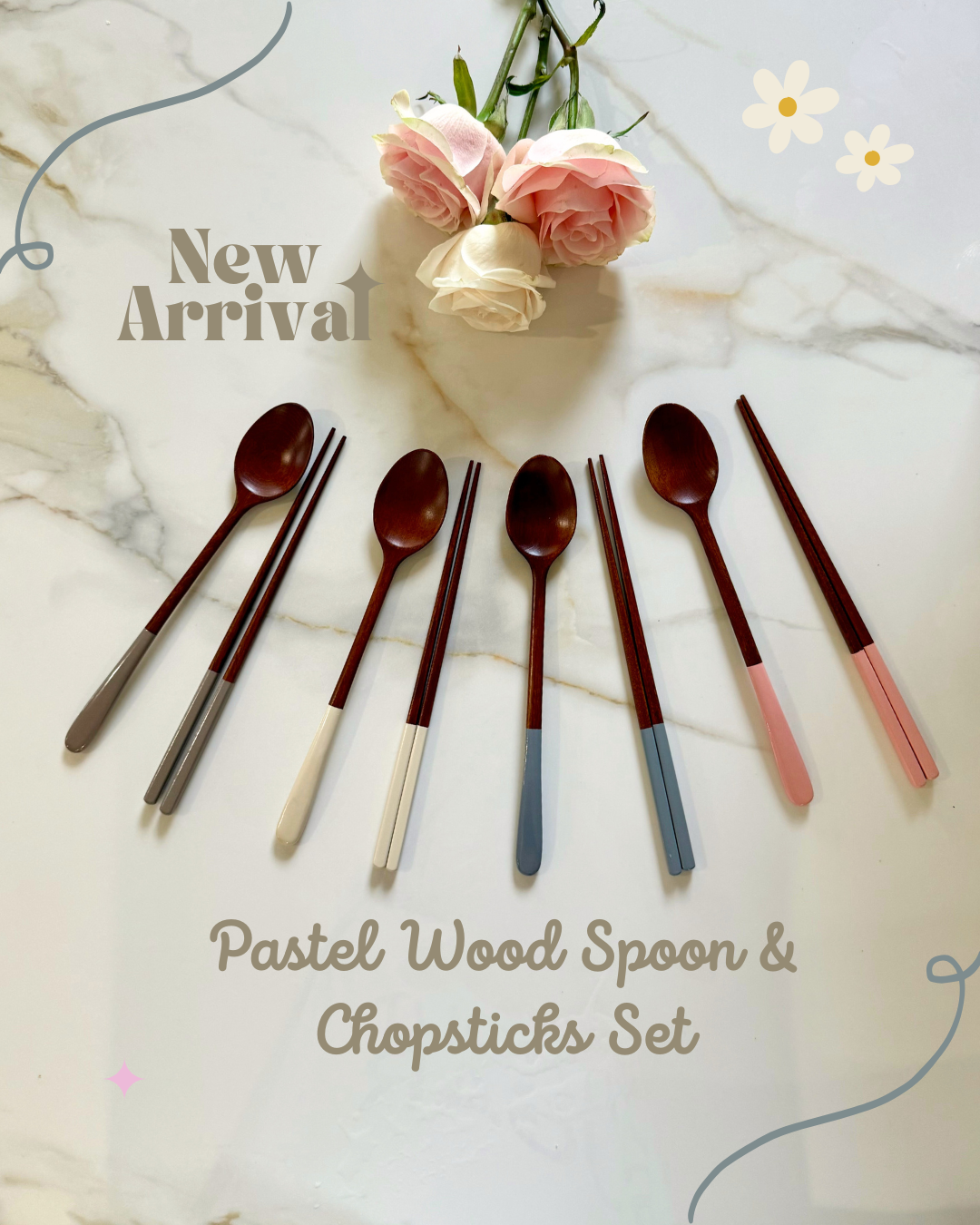Pastel Wood Spoon & Chopstick Set