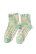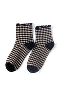 Cozy plaid ankle socks with charming ruffle trim—your go-to pair for effortless style through any season. Crafted from soft cotton, they're comfortable enough for everyday wear and playful enough to peek out from your favorite sneakers or boots. Embrace that cozy-chic vibe with every step.